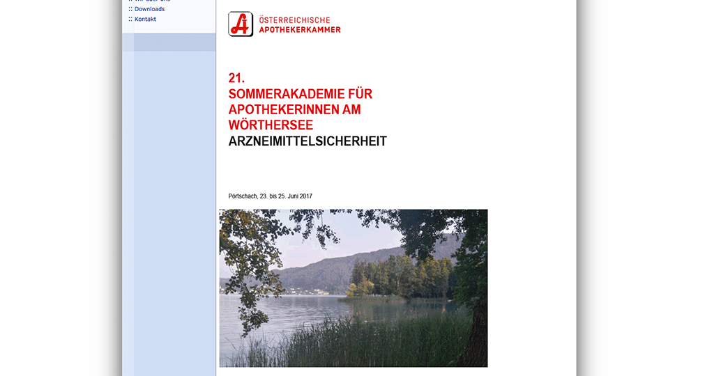 21. Sommerakademie der Österreichischen Apothekerkammer von 23. bis 25. Juni 2017 in Pörtschach: Arzneimittelsicherheit im Focus.