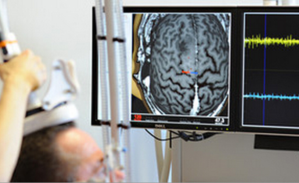 Navigierte Transkranielle Magnetstimulation(nTMS)-neurochirurgische Untersuchungsmethode. © Klinik für Neurochirurgie / Charité – Universitätsmedizin Berlin