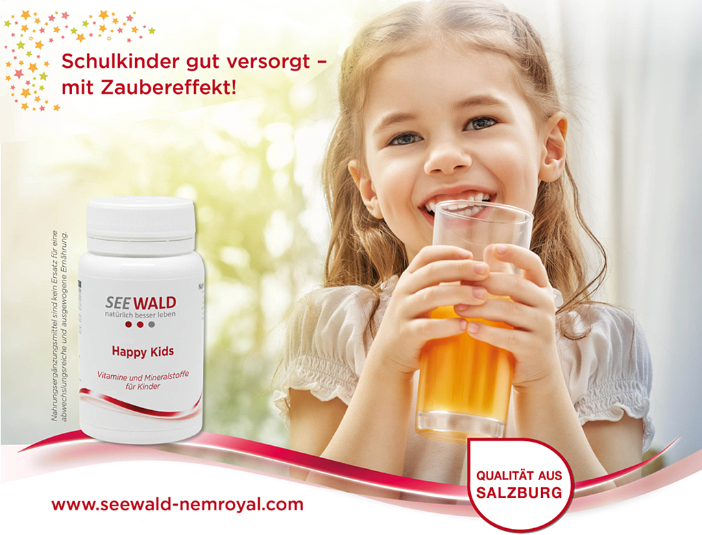 Die detaillierte Auflistung der einzelnen Inhaltsstoffe und gesundheitsbezogenen Funktionen findet man unter www.seewald-nemroyal.com/happy-kids.