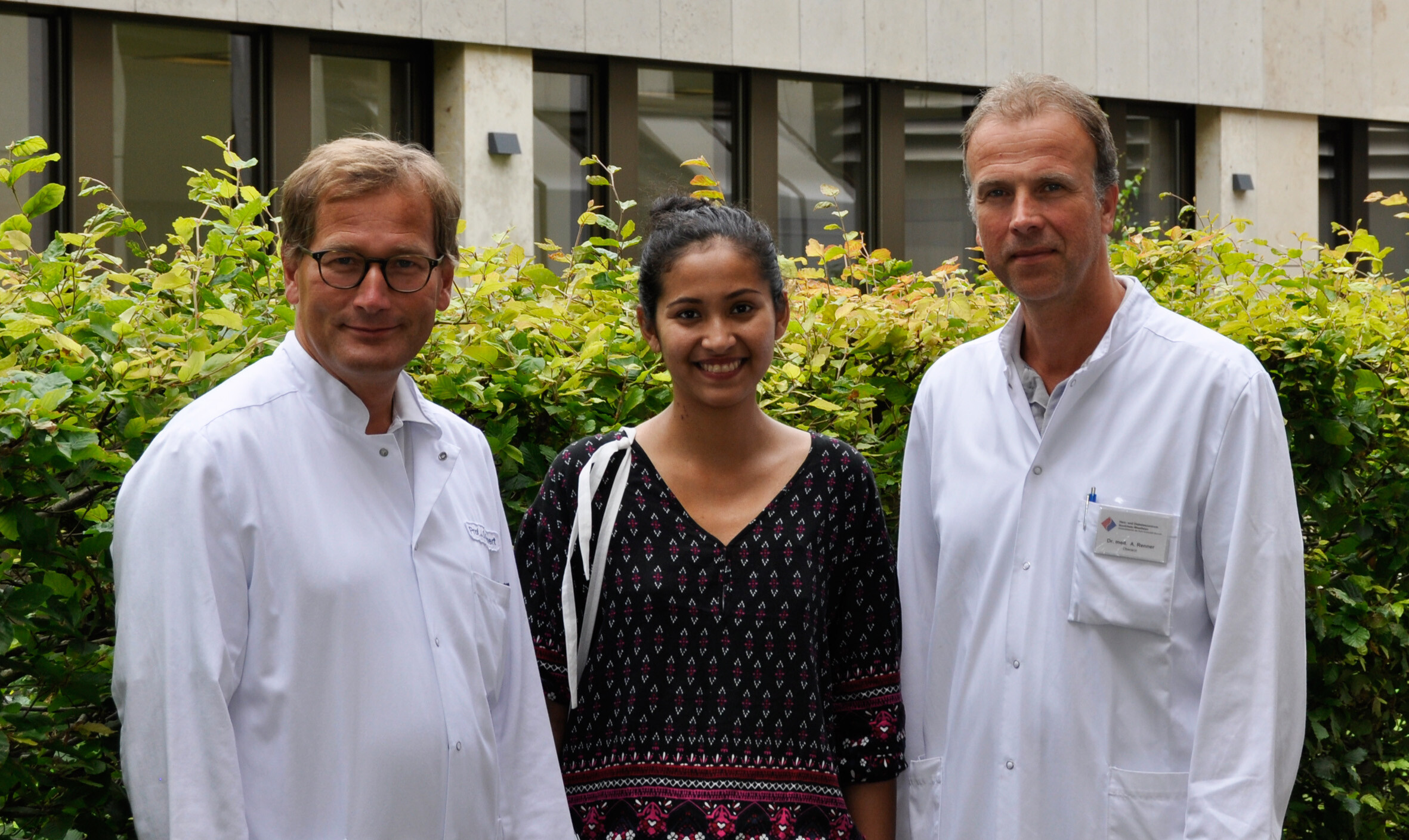 Herzklappenfehler und Schwangerschaft? Kein Problem – die Herzklappe wurde bei Daniele erfolgreich repariert (v.l.).: Prof. Dr. Jan Gummert, Daniele Fernandes dos Santos, Oberarzt Dr. André Renner. © Kerstin Konze