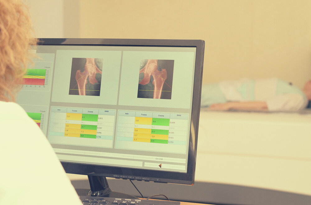 A,Woman,X-ray,Examines,The,Results,Of,Densitometry