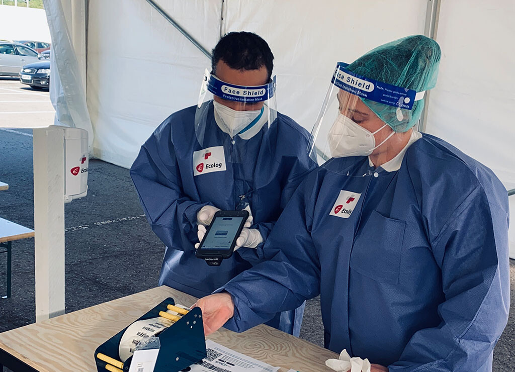 In Rekordzeit errichtete ECOLOG 17 Drive-Walk-Through-Teststationen, die bis zu 20.000 Tests pro Tag durchführen können. Der Prozess wurde entwickelt um den Workflow zu optimieren und liefert Testergebnisse innerhalb kürzester Zeit. Durchgeführt wird das Projekt von mehr als 200 Mitarbeitern, über 80 Zelte und 17 Containereinheiten wurden für das Testprogramm von ECOLOG aufgestellt.