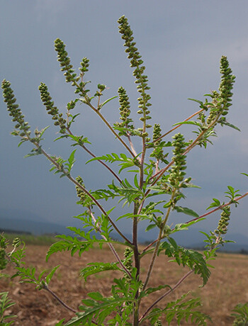 Ragweed-Pollen belasten aktuell betroffene Personen. Im Bild: Eine blühende Ragweed-Pflanze im Wiener Becken. © Franz Essl